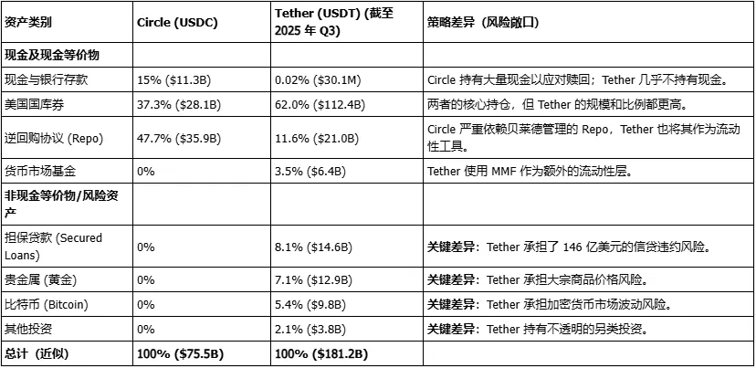تركيبة أصول احتياطي Circle مقابل Tether (بيانات حتى الربع الثالث والرابع 2025)