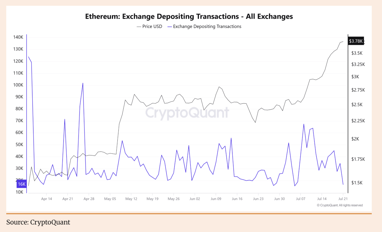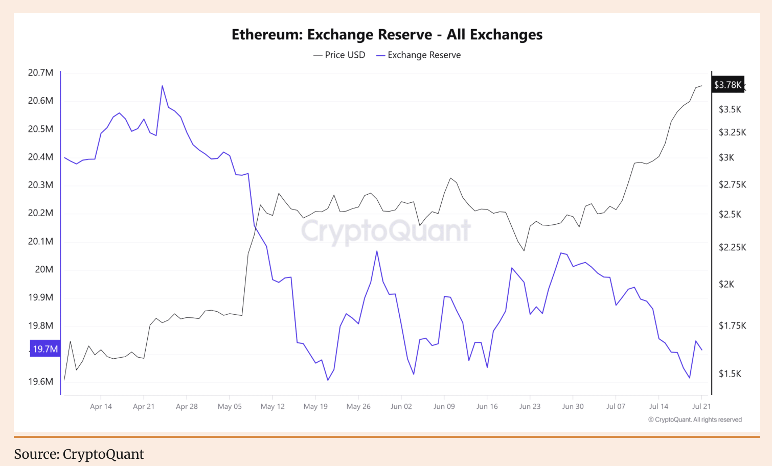تظهر المخزونات المتاحة في تبادل ETH نمط تراجع متسارع: