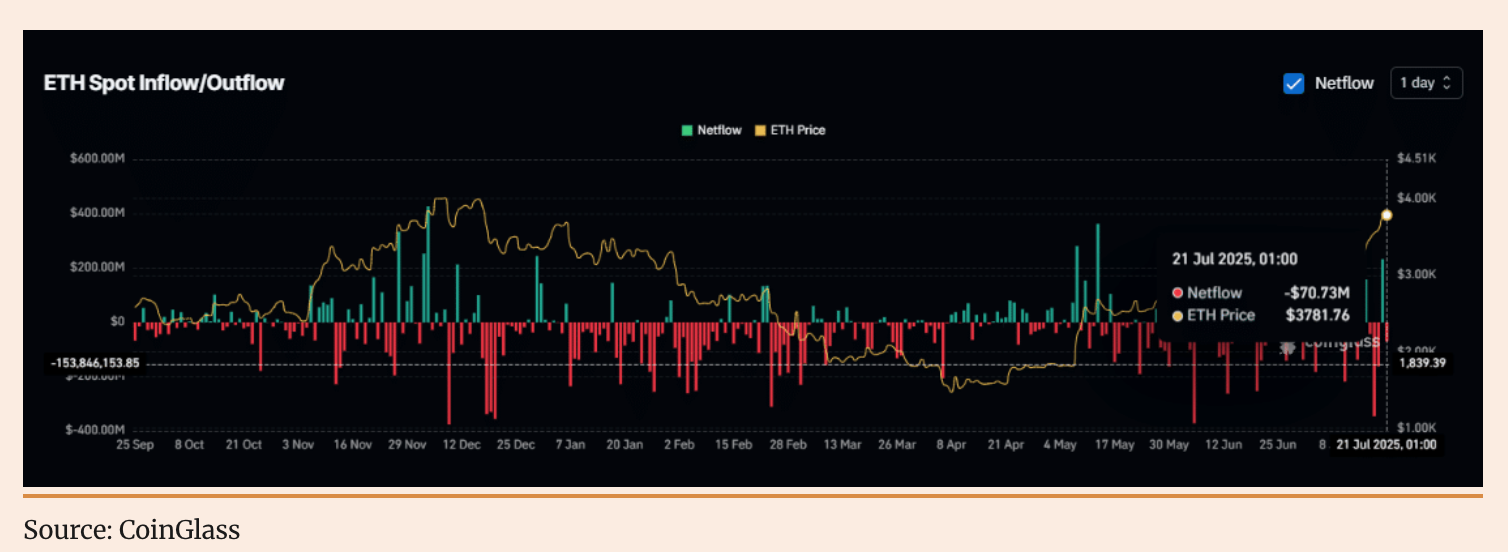 صافي تدفق الأموال على السلسلة 70 مليار دولار عبر السلاسل رأس المال يتدفق إلى ETH