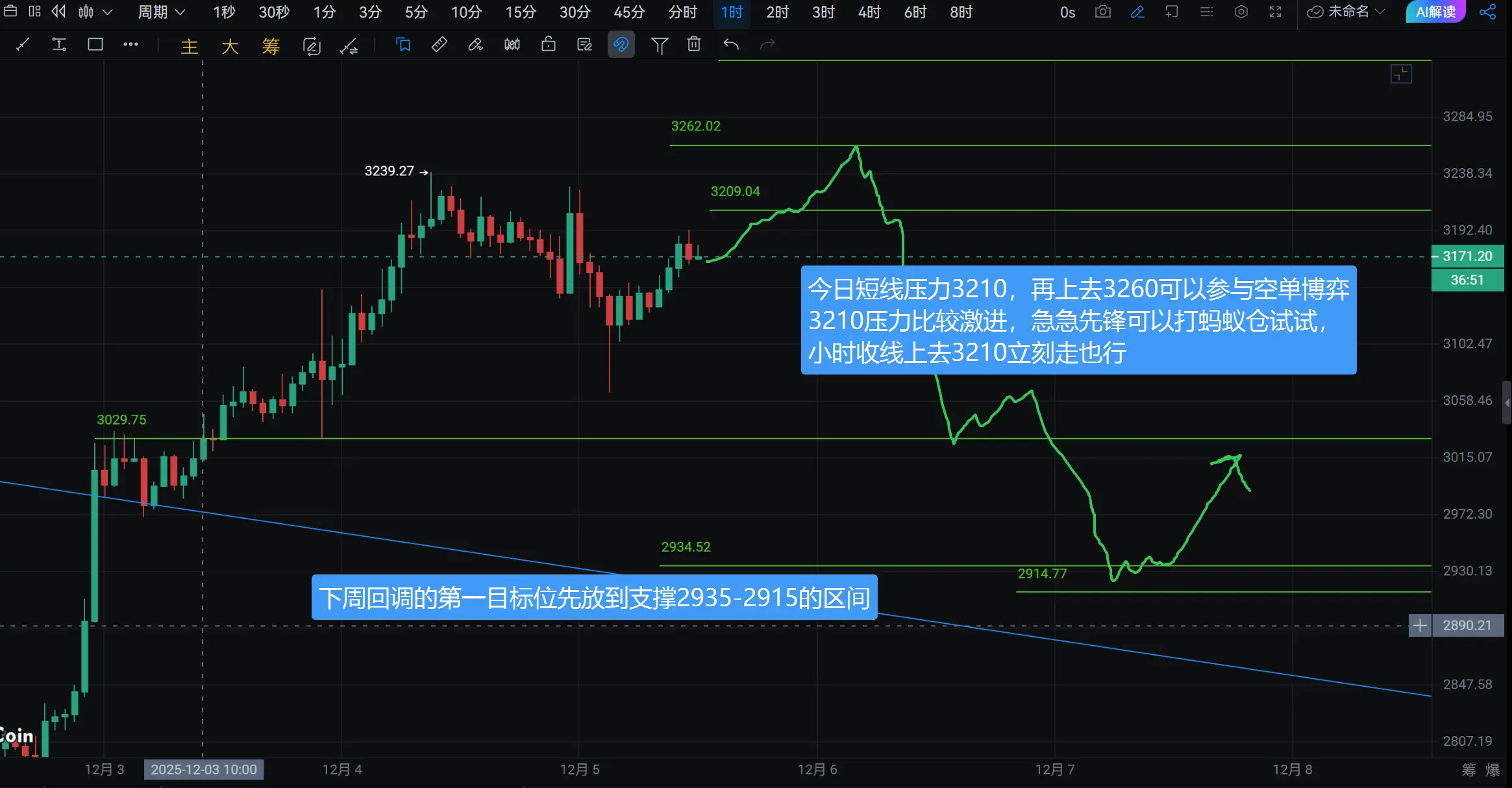 $ETH Para Ethereum, la resistencia de corto plazo hoy está en 3.210; de lo contrario, los cortos solo se pueden considerar en 3.260. El primer objetivo de soporte en retroceso se sitúa en la zona de 2.935-2.915. Durante el retroceso, también se debe prestar atención al nivel de 3.030, que actúa como zona de soporte/resistencia; se recomienda recoger parcialmente beneficios en los cortos en ese punto para mayor tranquilidad.
