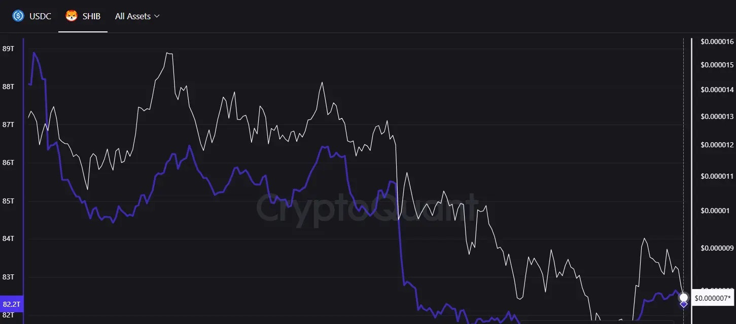 L’offre de Shiba Inu sur les échanges s’amenuise malgré les incertitudes actuelles sur le prix, ce qui suggère une pression de vente réduite.