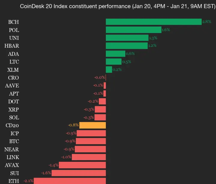 CoinDesk 20 Performance Update : Ethereum (ETH) chute de 2,1 %, l'indice principal en baisse