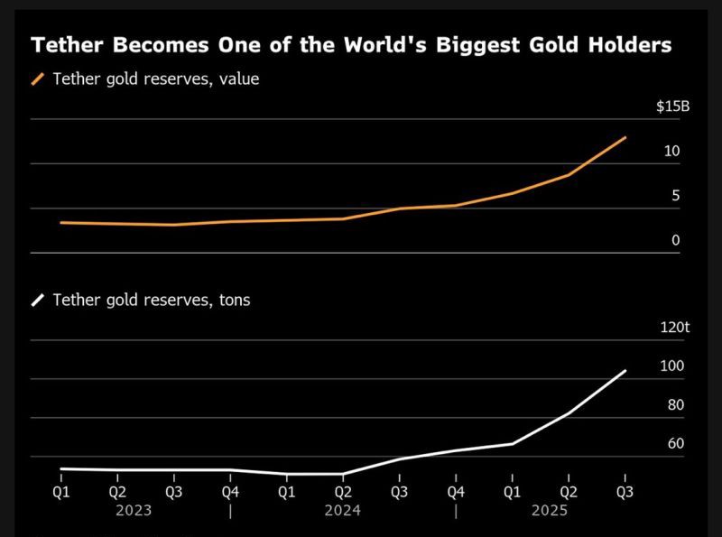 ソース: ETHNewsオリジナルタイトル:テザーの金準備が100億ドルを超え、世界のトップランキングに押し上げられるオリジナルリンク: https://www.ethnews.com/tethers-gold-reserves-explode-past-10b-pushing-it-into-global-top-rankings/新しいブルームバーグのデータによると、テザーは急速に世界最大の金保有者の中に入るようになり、これまでの安定コイン発行者の準備戦略における最も重要な変化の一つを示しています。## 金の準備が$10 億を超えるテザーの準備報告書によると、BDOによって検証され、ブルームバーグによってグラフ化されたこの企業の金保有量は、過去2年間で急激に拡大しています。2023年初頭の比較的安定した水準から、2025年第3四半期までに$10 億を超える金準備の価値が急増し、同社は中規模の国立中央銀行と同じリーグに入っています。この成長は、テザーのますます多様化したバックモデルを反映しており、現在は従来の現金等価資産に加えて、物理的な金への重要な配分が含まれています。## 金の保有量が100トンを超えるテザーが保有する金のトン数は一貫して増加しており、最も急激な増加は2024年末から2025年中頃の間に発生しました。ブルームバーグは、テザーの保有量が2025年第3四半期に100トンを超えたと推定しており、これは同社を世界の最大の民間部門の金所有者の一つに位置づける数字です。チャートの急激な上昇は、特に過去3四半期における会社の金地金ポジションの攻撃的な拡大を強調しています。## ステーブルコイン準備戦略のシフトテザーの金への移行は数年にわたって進行してきましたが、最近のデータはその加速を強調しています。歴史的に、ステーブルコインの準備金は現金、財務省証券、およびその他の高流動性の伝統的な金融商品に焦点を当てていました。テザーはマクロ経済の不安定性、インフレ、および地政学的な不確実性に対するヘッジとして金をますます採用しています。ブルームバーグのチャートは両方を示しています:* 金の準備価値が120~150億ドルの範囲に向かって上昇中* 物理的トン数が100トンのマークを超えて上昇この二重の上昇は、金価格の上昇とテザーによる追加の買収の両方を示しています。## これが暗号市場にとって重要な理由テザーのUSDTは世界で最も大きなステーブルコインであり、その準備構成は市場の信頼において中心的な役割を果たしています。前例のないレベルで金を蓄積することで、テザーは世界的なマクロ不確実性に備えているように見え、USDTの安定性の認識を強化しています。同時に、世界最大の民間金保有者の一つになることは、暗号経済を超えた会社に新たな影響力の層をもたらします。