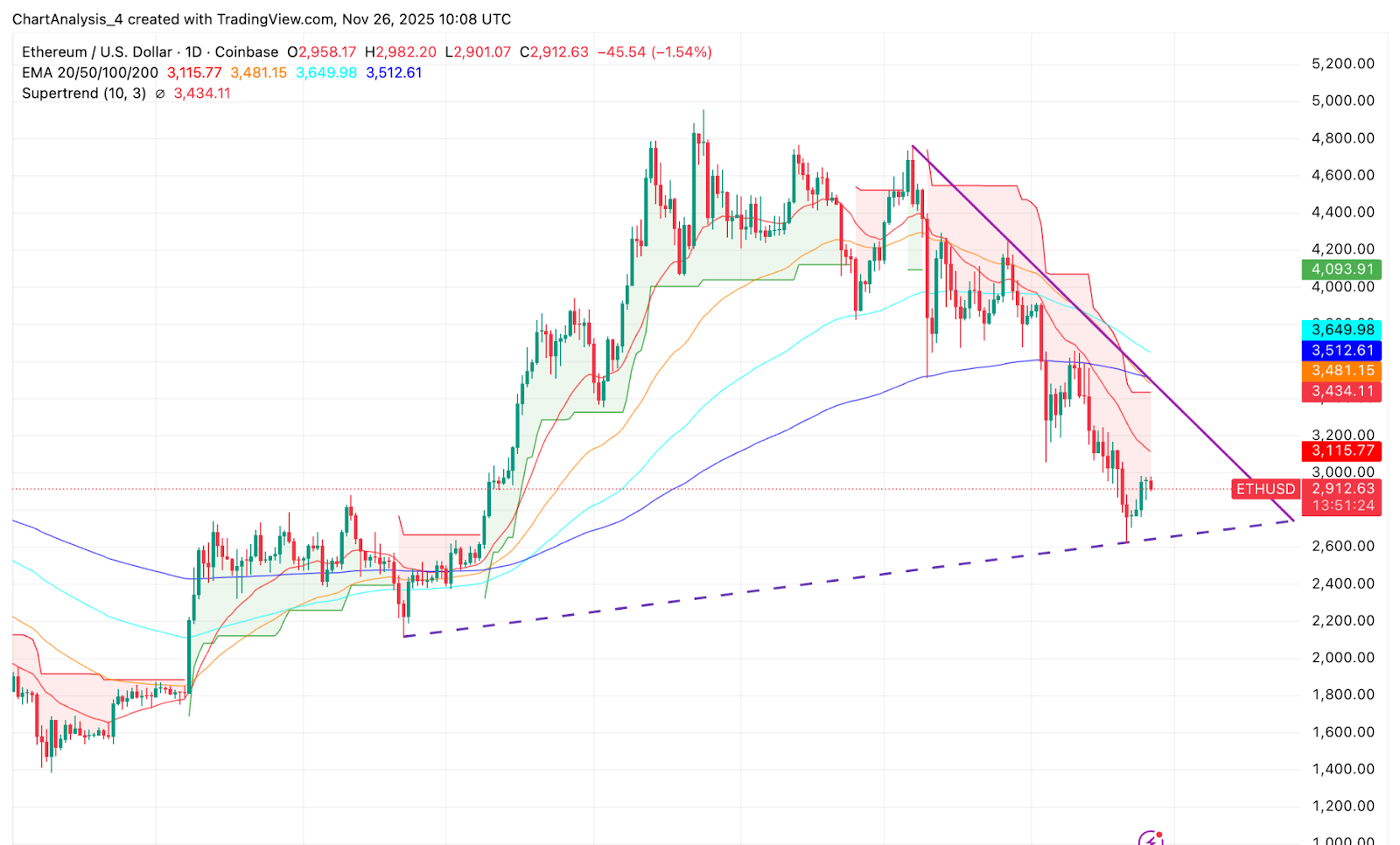 イーサリアムの次の大きな動きは、買い手がトレンドラインを突破し、重要なEMAをひっくり返すことができるかに依存しています。$3,115以上の強さはストーリーを変えます。$2,750を失うと、売り手に完全にコントロールが移ります。