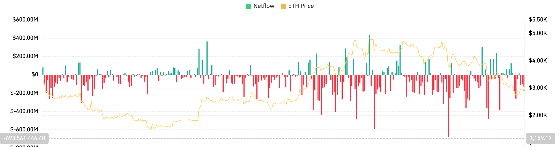 新しいETFデータは、昨日珍しい正の流入を示しました。ファンドは、ブラックロックによる4,610万ドルの購入をリードして、78.6百万ドルの純イーサリアムエクスポージャーを追加しました。この流入は、ほとんどの発行者で2週間の赤字の後にいくらかの安堵を提供します。また、機関デスクが低価格で選択的にエクスポージャーを追加していることも示しています。