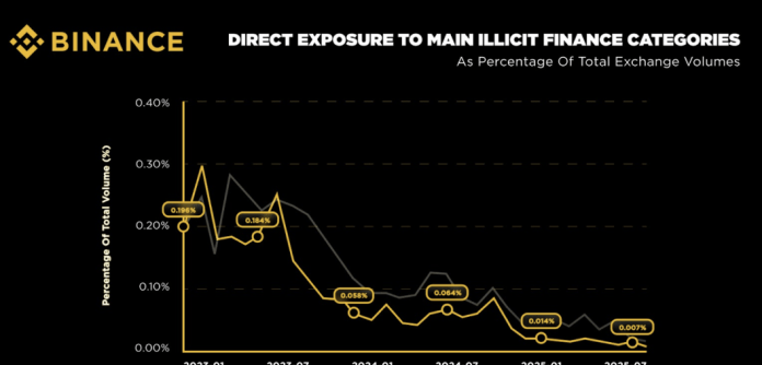 ソース: CritpoTendenciaオリジナルタイトル:ChainalysisとTRM Labsによると、違法な暗号通貨の使用が世界の取引所で歴史的な最低水準に落ち込んでいるオリジナルリンク: 中央集権型取引所における暗号通貨の不正使用は、現代的な測定が始まって以来、最も低いレベルに達しました。ChainalysisとTRM Labsの独立したデータに基づく新しい分析によると、違法なウォレットに直接関連する取引の割合は、現在、世界の7大取引所によって処理された総ボリュームのわずか0.018%から0.023%を占めるに過ぎません。最大のデジタル資産取引所の一つは、取引量とユーザー数において業界最高の結果を得ました。Chainalysisによれば、2025年6月には、取引されたボリュームのわずか0.007%が不正資金に関連しており、主要な競合他社の平均よりも2.5倍以上低い数値です。TRM Labsは、他の市場に対して約30%低いエクスポージャーを指摘し、同様の結論に達しています。## 直接露出とは何か、そしてそれが重要な理由直接的なエクスポージャーは、確認された違法活動に関与するウォレットに直接追跡できる取引所の総取引量の割合を示します。これには、ランサムウェア、詐欺、制裁違反、またはハッキングが含まれます。ブロックチェーンの固有の透明性のおかげで、この指標は正確に定量化できます。実践例:10,000ドルごとに1ドルが違法なアドレスに関連付けられている場合、直接的なエクスポージャーは0.01%です。レートが低いほど、内部システムが流通する前に疑わしい活動を検出、ブロック、および報告する効果が高くなります。伝えられるところによれば、見出しは暗号通貨を違法資金調達と関連付けることが多いが、伝統的金融システムにおける規模ははるかに大きい。NASDAQの2024年グローバル金融犯罪報告書によると、2023年にはグローバルな金融チャネルを通じて3.1兆ドルの不法資金が流通したと推定されています。また、国連とIMFは、世界のGDPの2%から5%に相当する年間約2兆ドルが伝統的なシステムを通じてマネーロンダリングされていると計算しています。対照的に、ChainalysisとTRM Labsは、中央集権的な7つの取引所を合わせた年間不正エクスポージャーは100億ドル未満であると推定しています。2025年のホワイトハウスの報告書「デジタル金融技術におけるアメリカのリーダーシップの強化」自体は、デジタル資産を通じたマネーロンダリングやテロ資金供与が「法定通貨や銀行振込で観察されるレベルよりもはるかに低い」と述べています。データはまた、加速した進展を示しています:2023年1月から2025年6月の間に、最大の取引所の一つは、他のセクターの改善ペースを上回りながら、6つの主要競合他社の合計を合わせたボリュームに相当する量を処理しつつ、直接的なエクスポージャーを96%から98%削減しました。## どのようにして違法な露出の最も低いレベルを維持するのかこの取引所は、予防、監視、迅速な対応を統合したマルチレイヤーセキュリティモデルによってこれらの結果を支えています:* **人的および技術的投資**: 1,280人以上の専門家 - 労働力の22% - がコンプライアンス、調査、リスク管理に従事しています。企業は、KYC、取引モニタリング、詐欺防止システムに年間数億ドルを投資しています。* **当局との協力**: 240,000件以上の当局からの要請に応じ、世界中の研究者に400件以上の技術トレーニングを実施しました。* **戦略的提携**: Beacon Networkの創設メンバーとして、他の業界関係者や分析プラットフォーム(と共に、グローバルプログラムT3+ )に参加し、リアルタイムで不正資金の凍結と回収に貢献しています。* **高度な監視**: インテリジェント分析、AI、および機械学習の使用により、誤検知を減らし、不正なフローの検出精度を高めることができます。オンチェーンの透明性、構造的投資、グローバルな協力の組み合わせは、業界を前例のない制御とトレーサビリティのレベルに引き上げており、これは毎年伝統的な金融システムを通じて流通する数兆ドルの違法資金と対照的です。