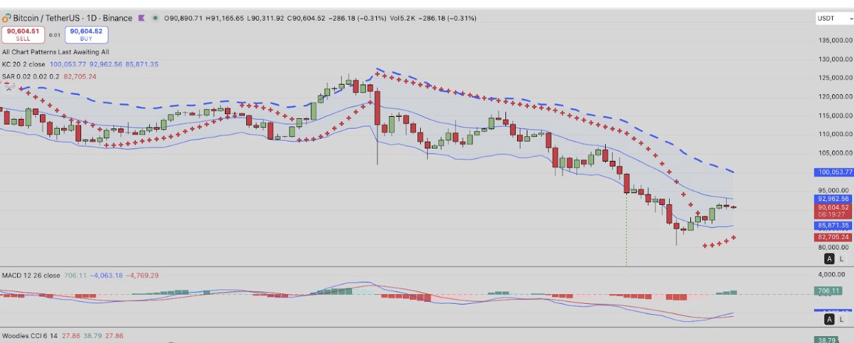 しかし、ビットコイン価格が週末に$90,000のサポートを維持できない場合、BTCは再び急速な清算の波に直面するリスクがあります。$89,500を下回る連続した日次クローズは、強気のモメンタムを弱め、$85,880に向けた修正を引き起こす可能性があります。これは下部ケルトナーバウンダリーに近いです。