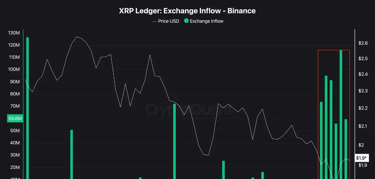 As the exchange that concentrates the largest share of XRP trading volume, major platforms often serve as early indicators of shifting market intent. Rising inflows to exchanges are commonly interpreted as a signal that holders are preparing to sell, particularly when the increase is sudden and sustained.