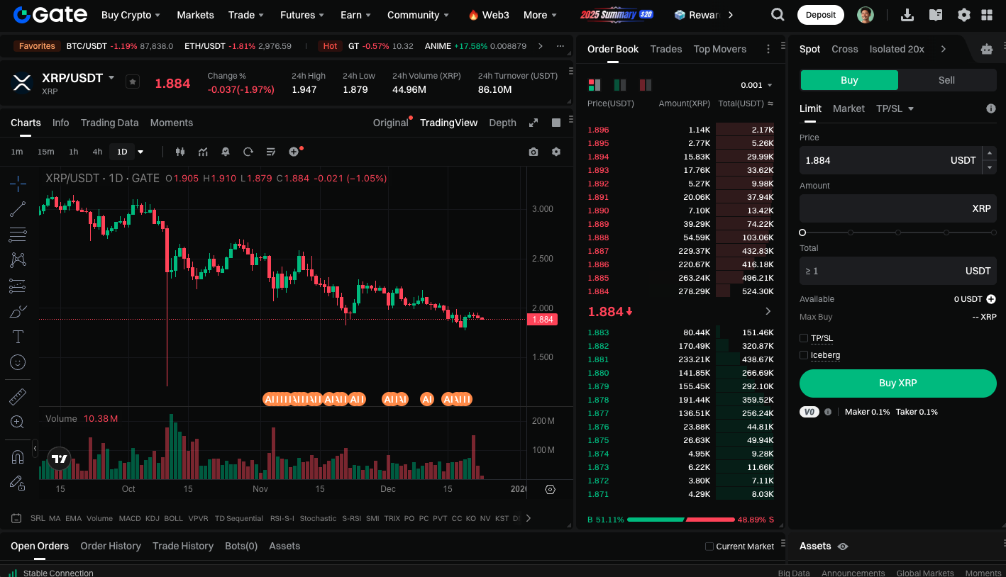 Начните торговать XRP на спотовом рынке: https://www.gate.com/trade/XRP_USDT