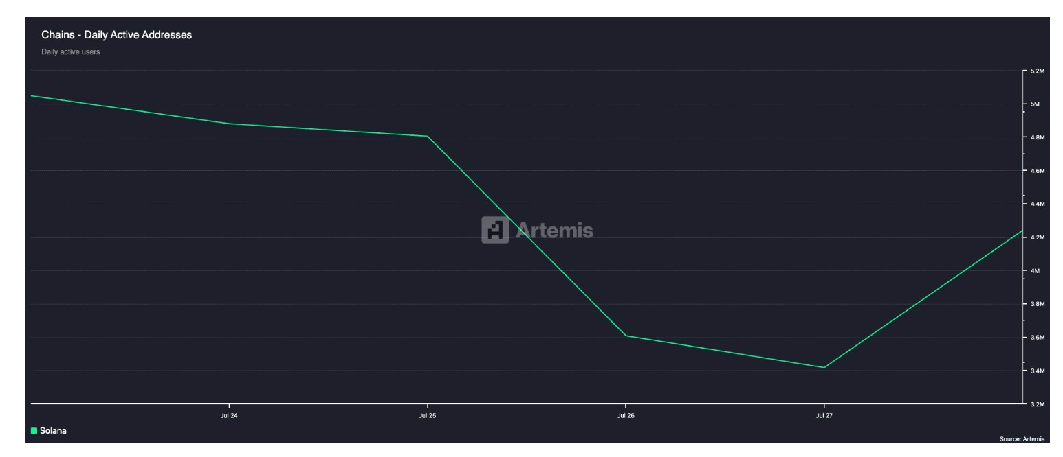 (Solana ежедневно активные адреса | Источник: Artemis)