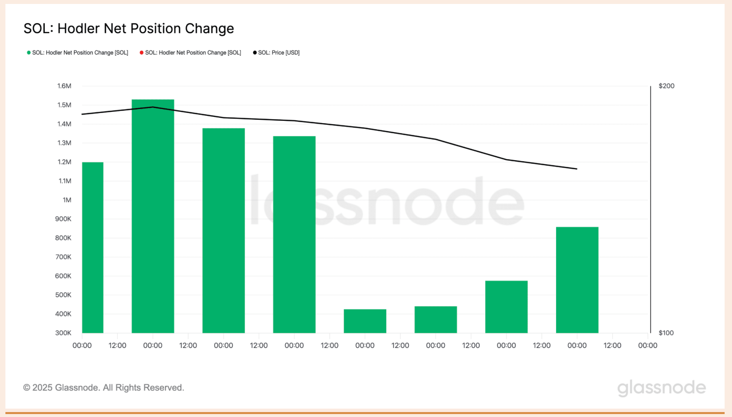 Долгосрочные держатели против тренда скупают, объем накопленных монет в холодных кошельках за неделю вырос на 102% Цена SOL на Solana не поколебала уверенности долгосрочных инвесторов. Данные Glassnode в блокчейне показывают, что с 30 июля чистая смена позиций Hodler (держатель > 155 дней) выросла на 102%. Этот индикатор отражает 30-дневную чистую динамику позиций долгосрочных участников, значительный рост указывает на то, что активы переходят от краткосрочных трейдеров к твердым держателям. Несмотря на падение цен, больше SOL было переведено в холодные кошельки, что сигнализирует о стратегическом накоплении на падении, а не о панической продаже.