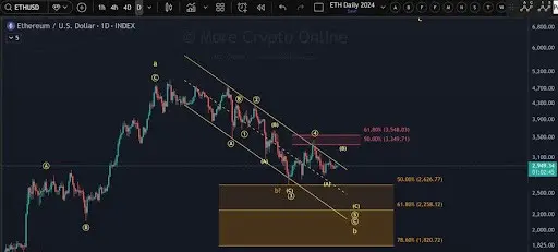 На данном этапе пробой выше коррекционного канала — это минимальный признак того, что может развиваться восходящий импульс. Даже если Ethereum продолжит расти, следует проявлять осторожность. Любое движение с текущих уровней может просто развиваться как желтая волна B внутри более крупной круговой волны 5 или как расширенная фаза круговой волны 4. Обе сценарии подразумевают, что восходящее движение может быть коррекционным по своей природе, а не началом устойчивого ралли.