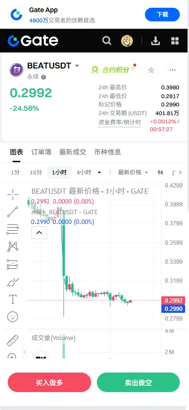 $BEAT Объемное резкое падение -25%, высокий уровень открытых позиций, демонстрирующий типичный сценарий ликвидации бычьих позиций.