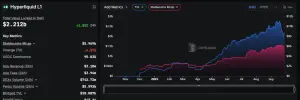 Hyperliquid'in Kasım 2024'teki debutundan bu yana performansı dikkat çekici oldu. Veriler, protokolün toplam kilitli değerinin (TVL) lansmanda yaklaşık $154 milyon dolardan 2.2 milyar dolardan fazla bir seviyeye yükseldiğini, bu sürede %1400'lük bir artış olduğunu gösteriyor.