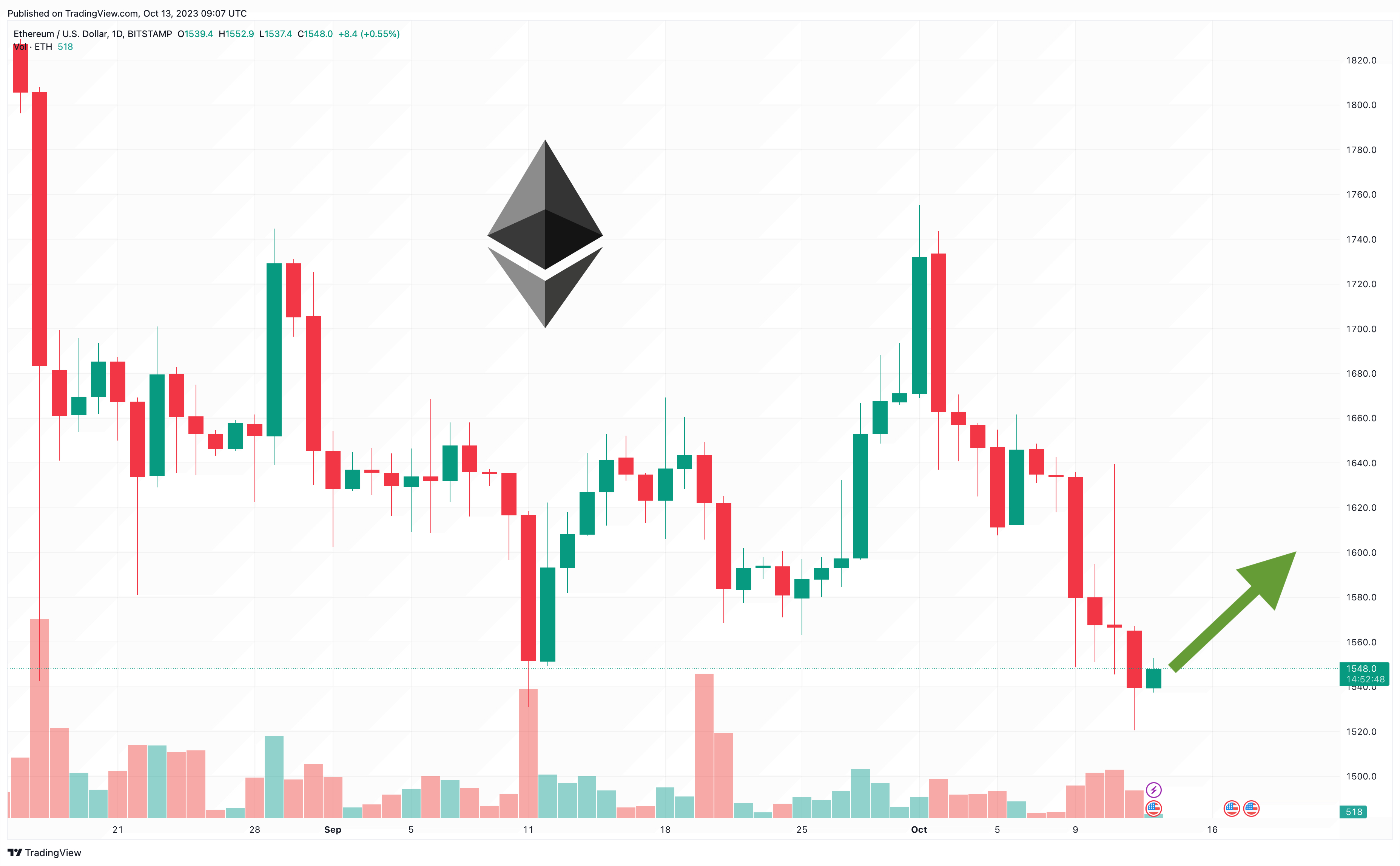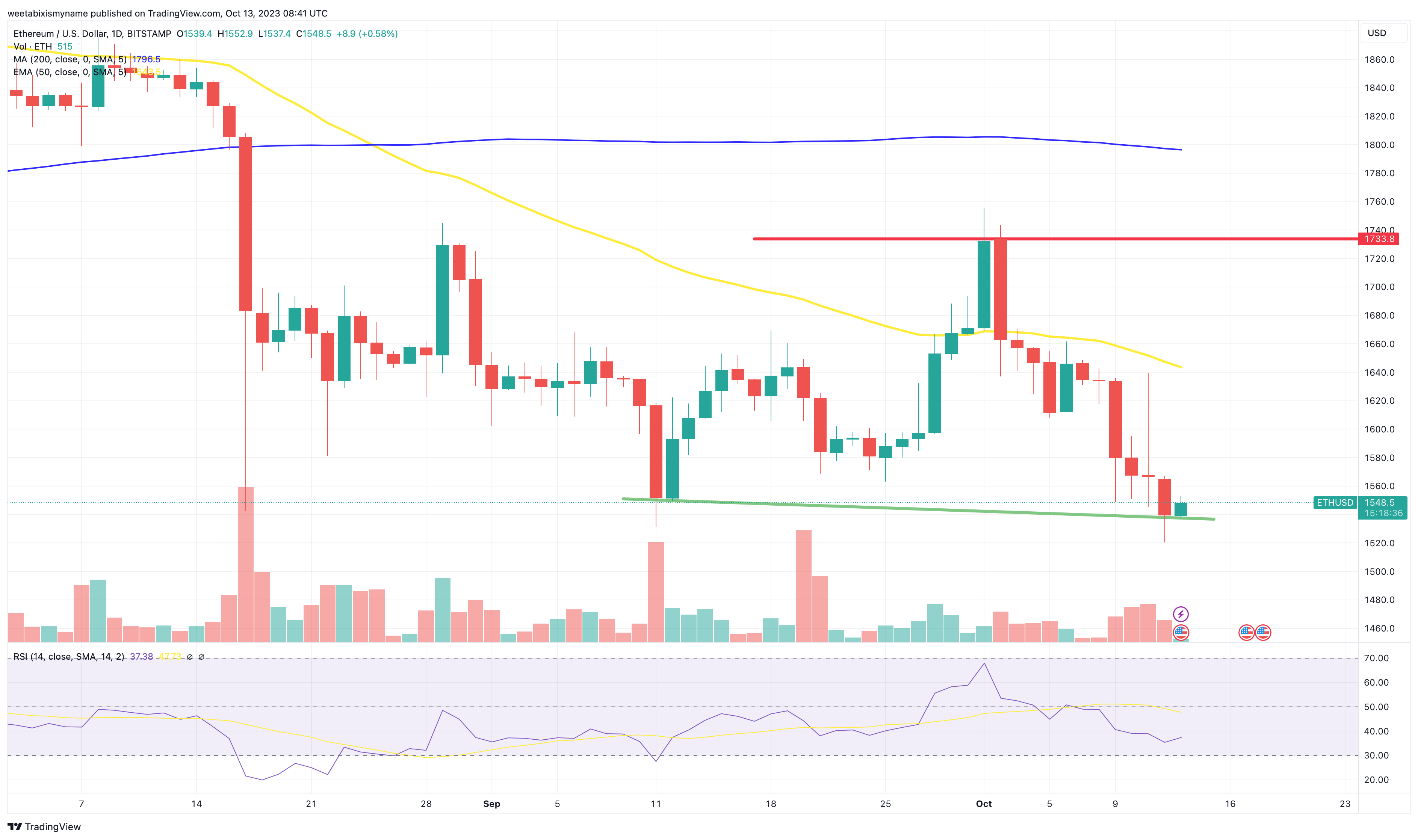 Source: TradingViewEthereum has dipped again today, with its fall to $1,550 representing a 0.5% decline in 24 hours and a 5% drop in a week that has been largely negative for the cryptocurrency market.