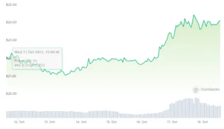 Market observers have highlighted the significance of a convincing flip of the $25 hurdle into a support level, suggesting potential bullish momentum that could drive the price towards the $27 mark in the near future. However, cautionary notes have been sounded regarding the possibility of a price reversal, given the RSI’s overbought condition and the persistence of the resistance at $25.