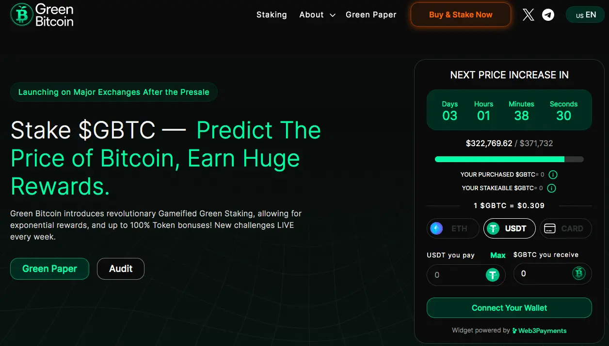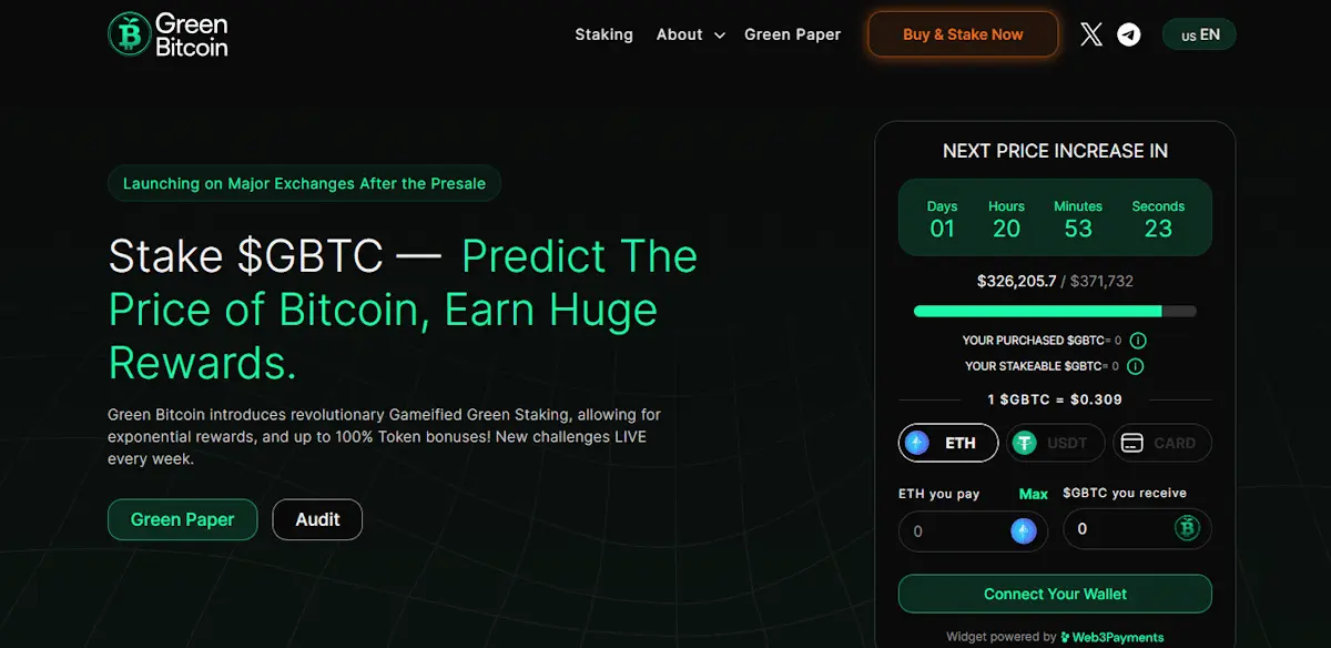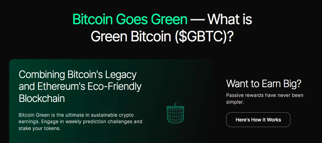 Our how to buy Green Bitcoin guide offers a simple walkthrough for how to invest in the $GBTC token presale. Green Bitcoin uses an innovative green staking model, offering high token rewards and staking benefits.