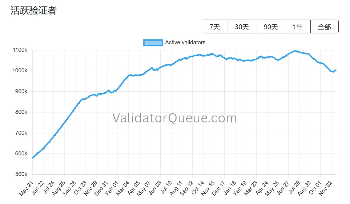 Перш за все, припливи у ETF Ethereum істотно скоротилися. Загальний обсяг запасів ETF — близько 6,36 млн ETH, або 5,25% від пропозиції. За даними SoSoValue, на середину листопада чисті активи спотових ETF Ethereum становили близько $18,76 млрд, але цього місяця відтік значно перевищив приплив, одноденний відтік сягав $180 млн. Порівняно з рівномірними припливами у липні-серпні, потоки капіталу перейшли від стабільного зростання до нерівномірного спаду.