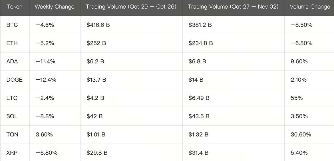 Trong chu kỳ này (27 tháng 10–3 tháng 11), ETH tích lũy trong vùng $3.700–$4.250. Đầu tuần, giá tiến sát kháng cự $4.250 và gặp áp lực bán. Giữa tuần, giá giảm về vùng hỗ trợ quanh $3.700, đến cuối tuần, động lực phục hồi yếu dần, tạo mô hình “tích lũy trong biên độ và phục hồi thử nghiệm”. Nhà đầu tư ngắn hạn nên chú ý đến việc vùng hỗ trợ $3.700 có được giữ vững không và khu vực kháng cự $4.250–$4.300 có bị phá vỡ hay không để xác định hướng đi ngắn hạn.