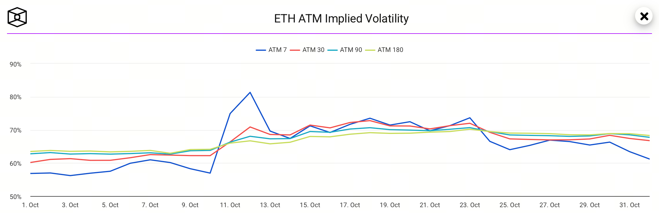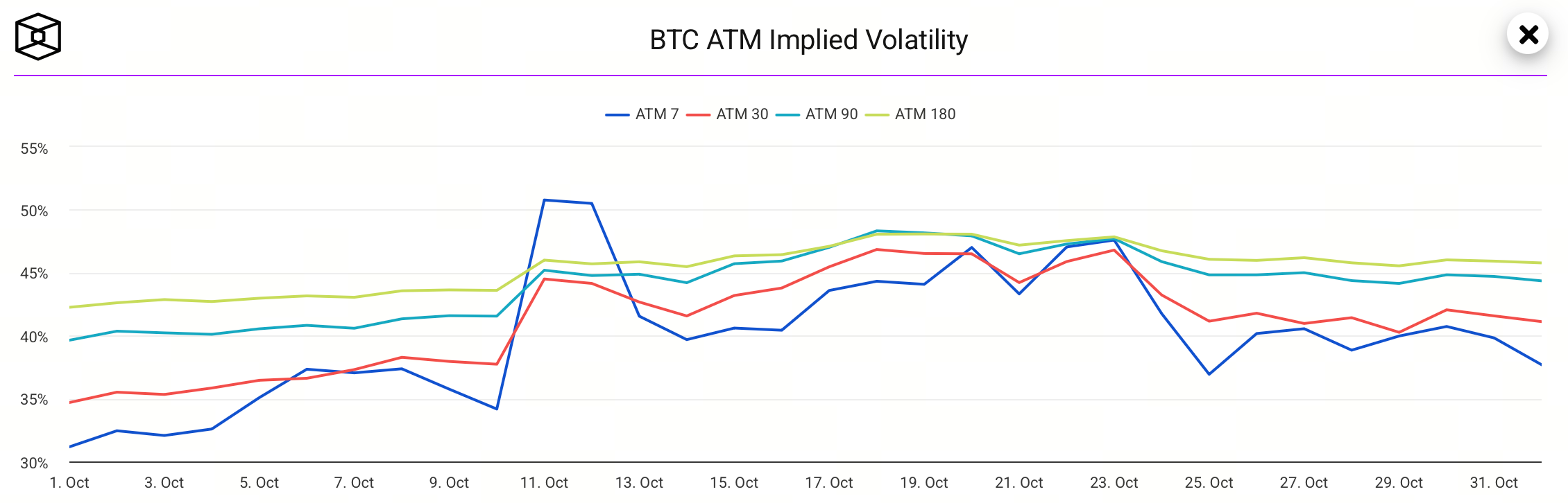 Chênh lệch giữa IV ngắn hạn và dài hạn đã trở về mức bình thường, phản ánh cách tiếp cận hợp lý hơn của thị trường đối với biến động ngắn hạn.