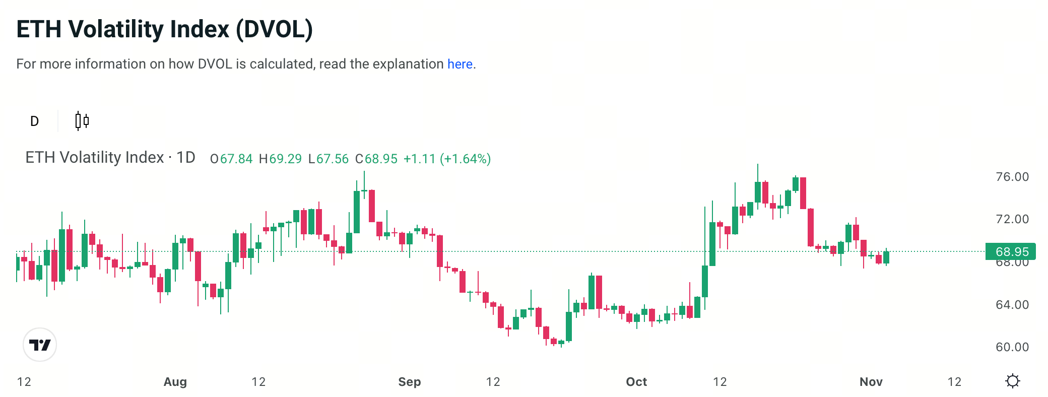 Thị trường quyền chọn: Dữ liệu công khai mới nhất cho thấy biến động ẩn (IV) của ETH ở mức khoảng 69%, hiện đã ổn định sau khi giảm từ mức đỉnh trước đó, phản ánh tâm lý thị trường bình tĩnh hơn và kỳ vọng biến động lớn đã giảm.