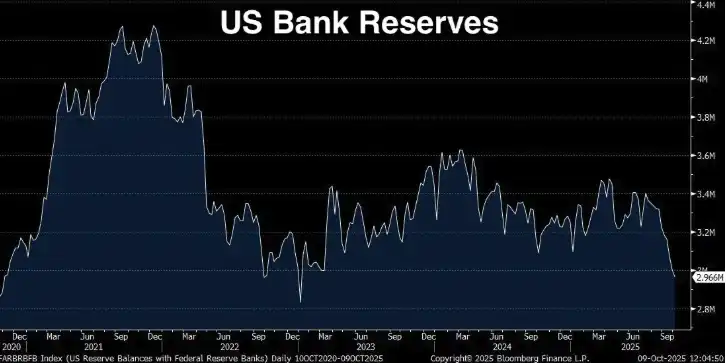 Và dự trữ hiện tại của chúng tôi là 2.96 triệu tỷ USD, nói một cách đơn giản, chúng tôi đã ở trong tình trạng nguy hiểm. Và do RRP đã gần như bị vét sạch, Cục Dự trữ Liên bang không còn bất kỳ không gian đệm nào.