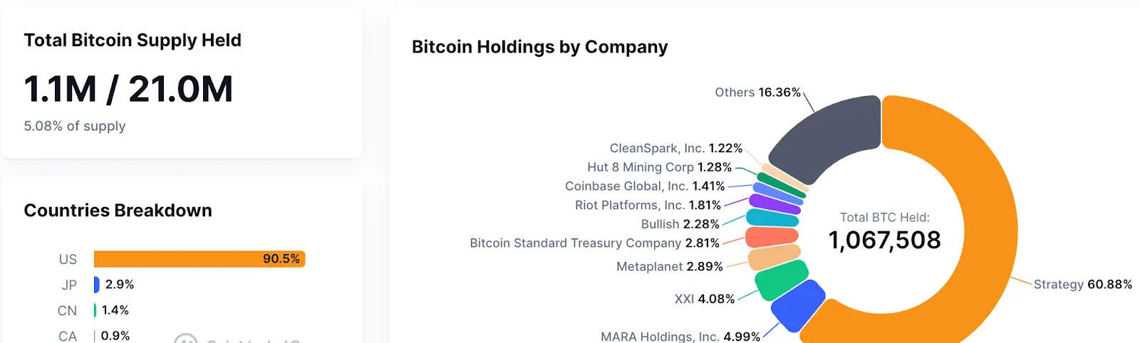 MicroStrategy nắm giữ 60% tổng số BTC mà các DAT hiện đang sở hữu.
