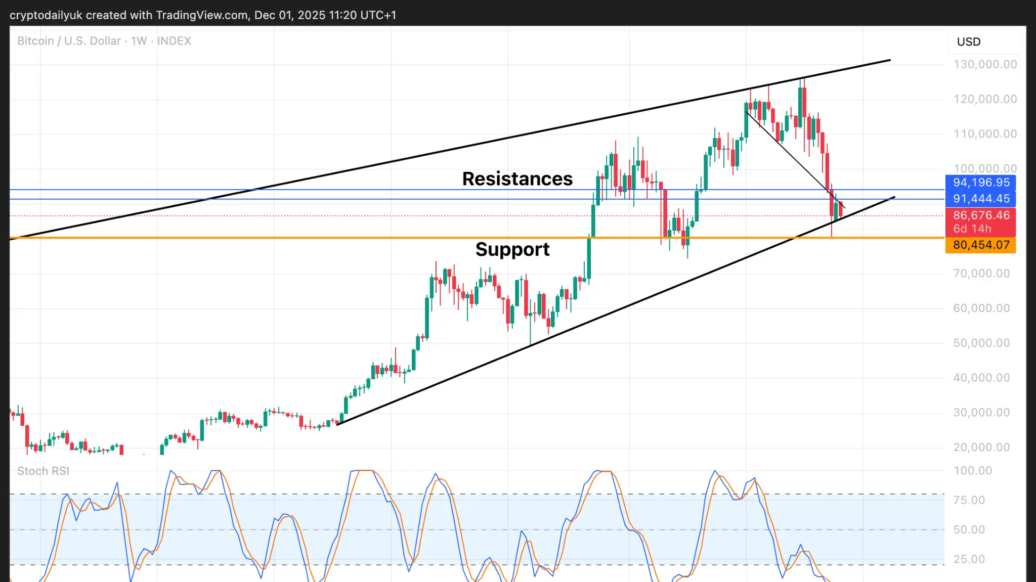 Liên kết gốc: https://cryptodaily.co.uk/2025/12/bitcoin-btc-breaks-down-from-ascending-channel-time-to-worry
