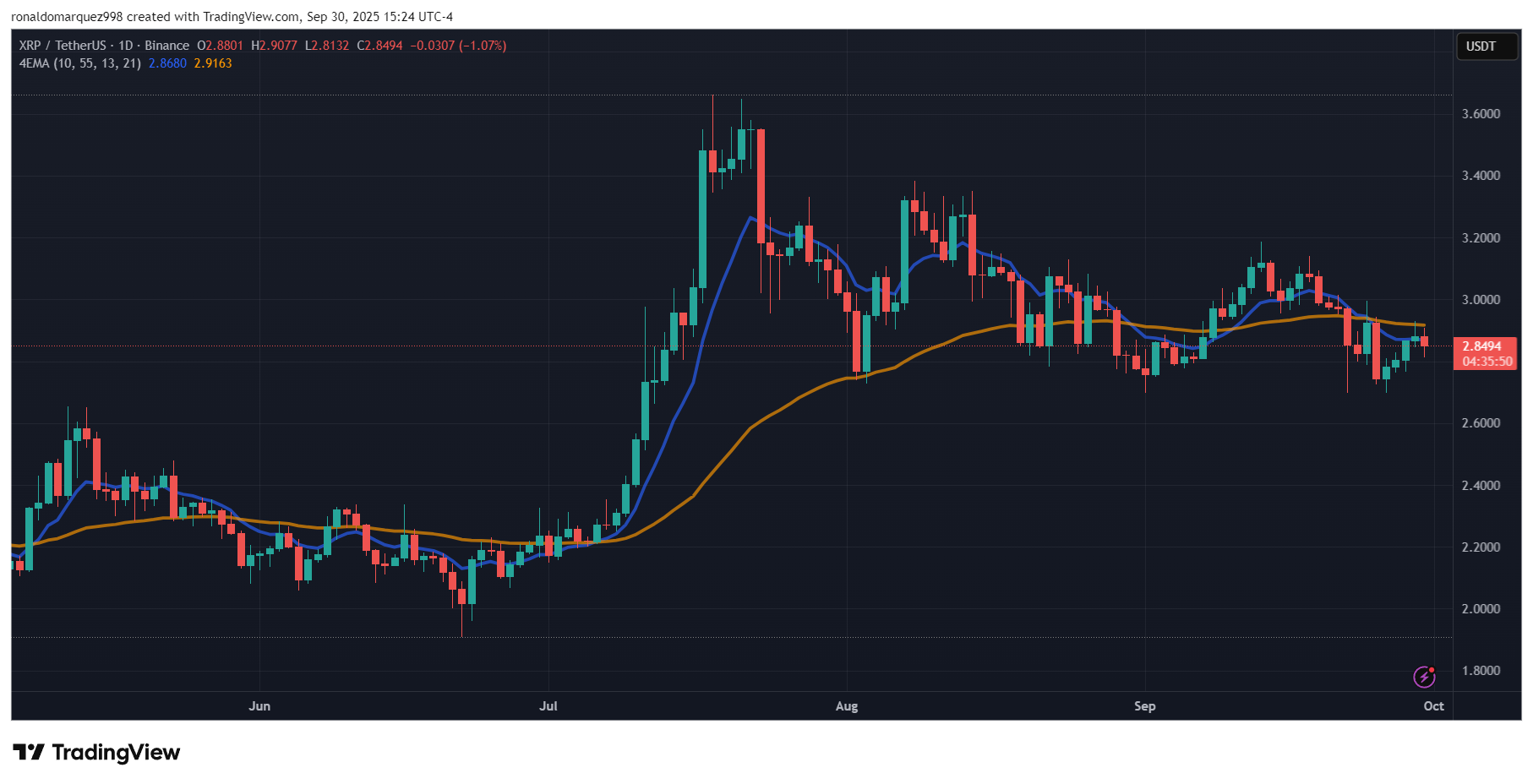 !Ripple日線圖顯示 XRP 的價格正在努力恢復$3 mark。資料來源:TradingView.com 上的 XRPUSDT特色圖片來自福布斯,圖表來自 TradingView.com