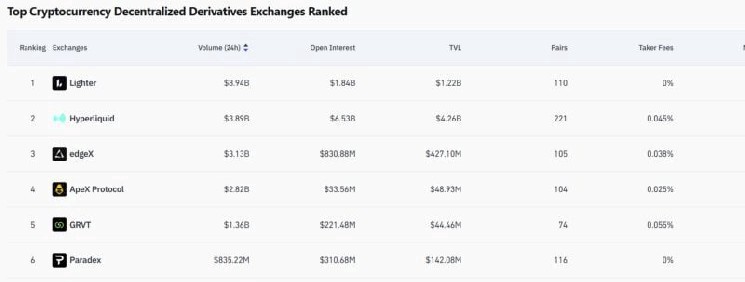 Lighter在24小时的去中心化交易所交易量中超过了Hyperliquid,$9B