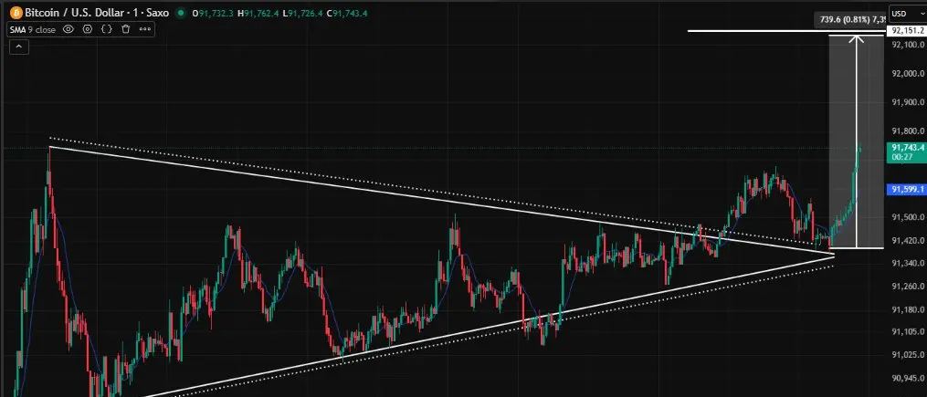 在这种不确定时刻,比特币凭借其“数字黄金”的声誉,吸引了一波避险买盘,推动其突破$90k 关口。